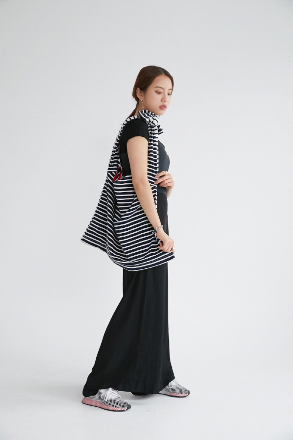 일반 티셔츠를 어깨 및 허리에 둘렀을 때의 불편함을 보완하였으며, 깔끔한 안쪽 배색 시접처리로 뒤집어 사용시 색다른 연출이 가능합니다.