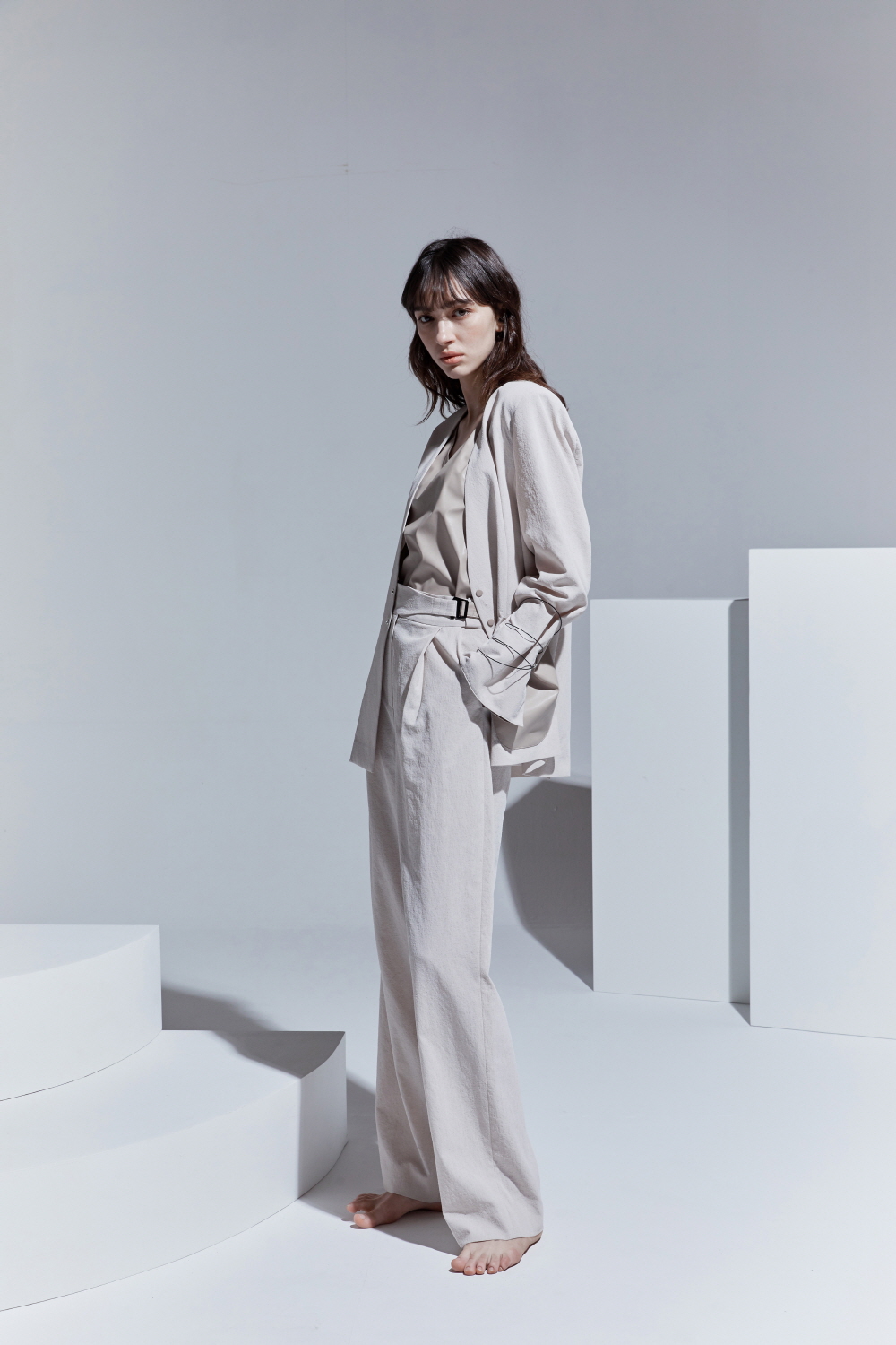 핀턱이 잡혀있어 깔끔하면서도 시크한 실루엣으로 디자인 되었으며 허리에 버클 포인트를 주었습니다. 허리에 히든 밴딩 시스템이 적용 되어있어 더욱 편안한 착용감을 느끼실 수 있습니다.