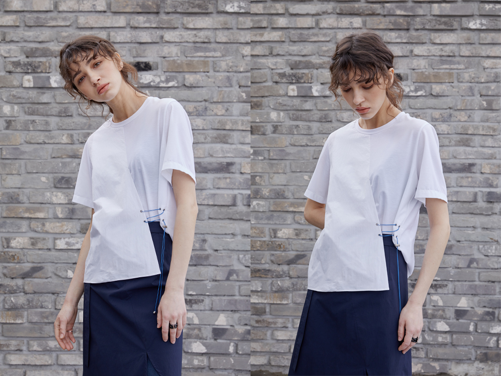 몸에 닿는 부분은 흡습속건 (땀을 빨리 흡수하고 건조하는)기능이 있는 원단을 사용하여 탁월한 착용감을 느낄 수 있으며, 앞자락이 겹쳐지는 듯한 레이어드된 디자인과 스포티한 부자재가 어우러지는 유니크한 상의 제품 입니다.